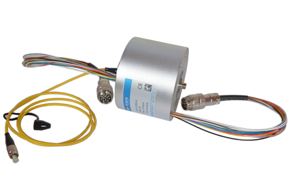 電滑環,在所有滑環系列中使用最廣泛,也稱電刷、碳刷、集電環、集流環、匯流環、旋通、旋轉電氣關節,專用于在無限制連續旋轉時,傳輸功率電源、信號電源。定子與轉子部分分別引出導線連接固定結構與旋轉結構的電源與終端電器,并隨之旋轉。根據其整體結構的不同,分為實圓滑環(在旋轉體上挖一個孔,安裝滑環),(如圖),空圓滑環(將滑環安裝在旋轉軸上)(如圖),以及分離滑環、扁盤滑環、水銀滑環、特型滑環等等。